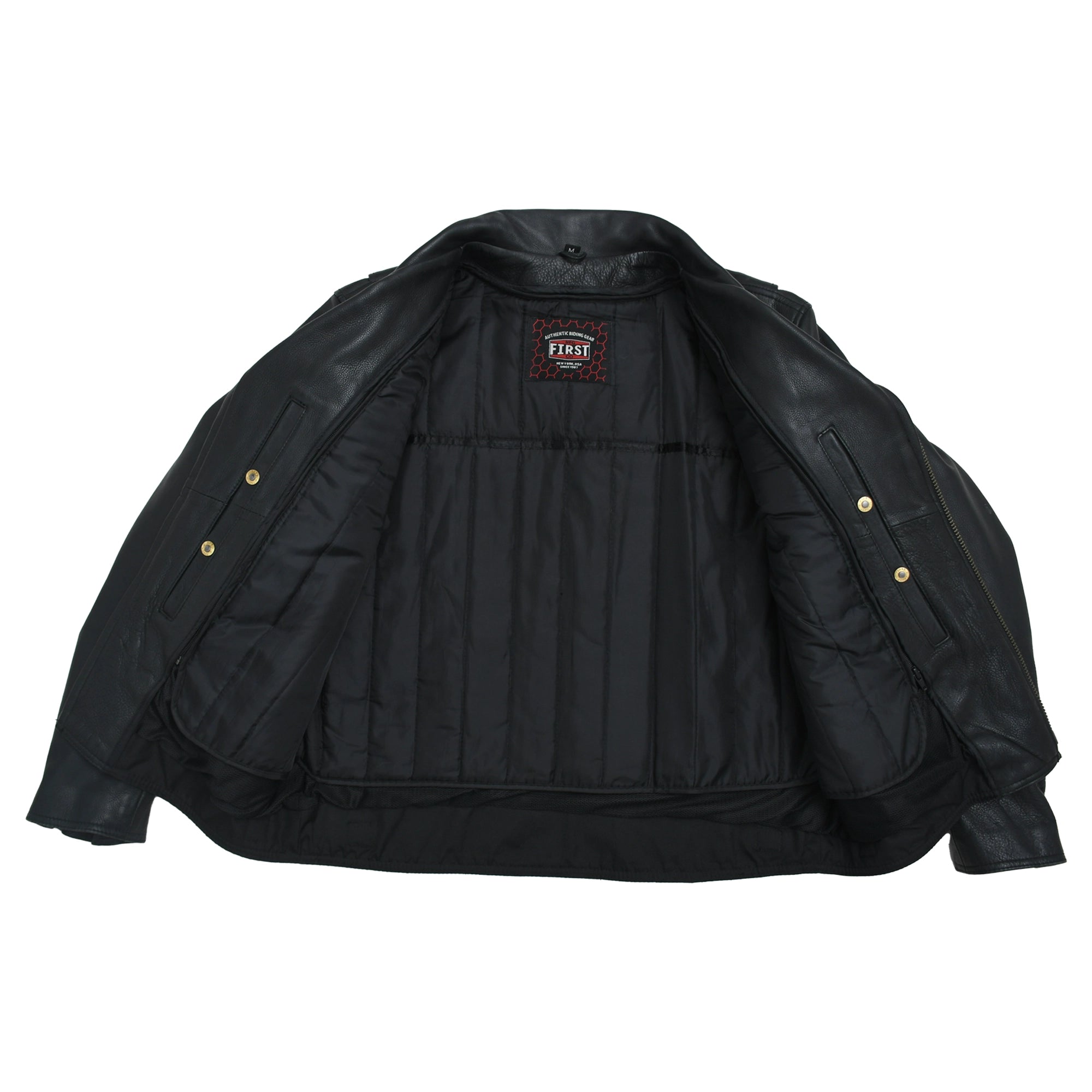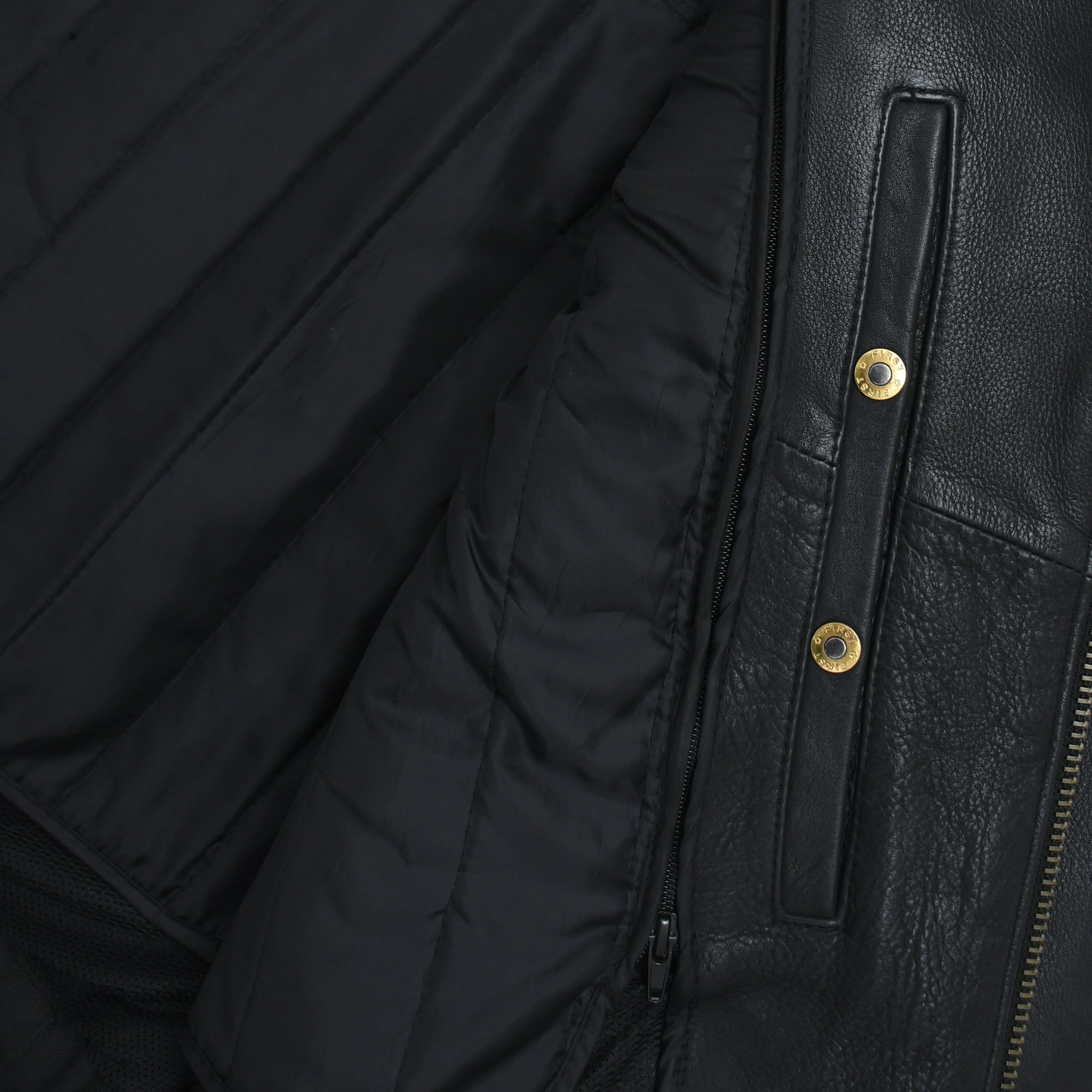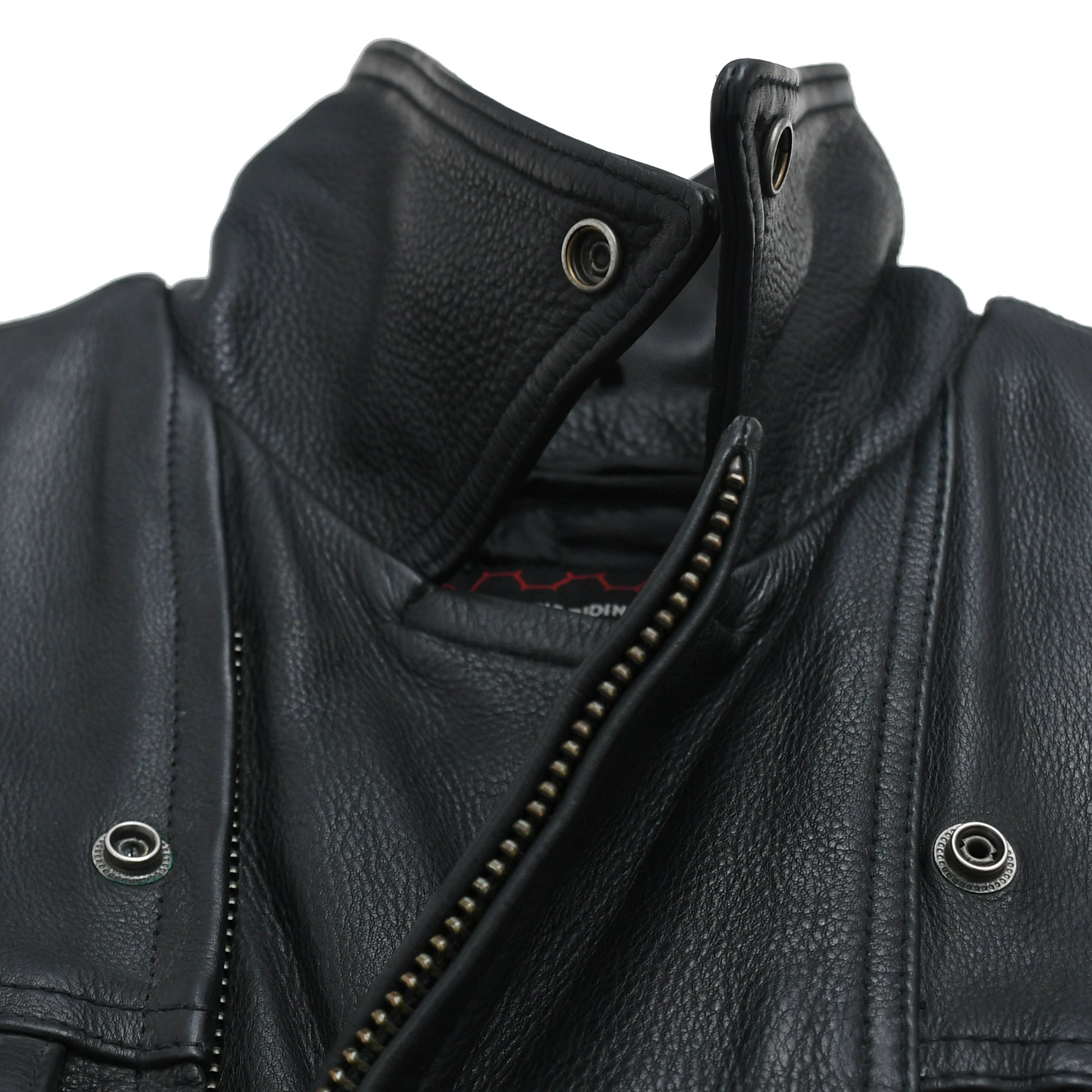 Motorbike Leather Jacket Mastermind Men’s Motorcycle Leather Jacket — built for riders who want lasting comfort, classic style and dependable protection. Crafted with premium materials and practical details for everyday use and weekend tours. FIM244BNKDZ | Mastermind – Men’s Motorcycle Leather Jacket The Mastermind combines the look of a more classic motorcycle style jacket with the pockets and features of one of our best sellers, the Raider jacket. With 8 hidden utility pockets, two conceal carry pockets, and armor pockets, you’ve got more pockets than you’ll know what to do with. It also features an action back, underarm gussets and a zip out thermal liner. This jacket runs a little large, so be sure to check the size chart. Featur Fit & Use: Suitable for daily riding and travel. Please review sizing and care instructions.
